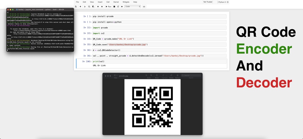 Jupyter Notebook containing the Python code of making QR code generator and decoder